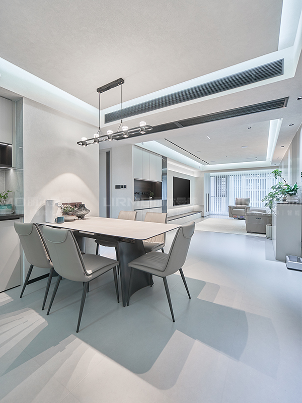 客餐厅打通一体,整体都是明亮开阔,没有太多棱角