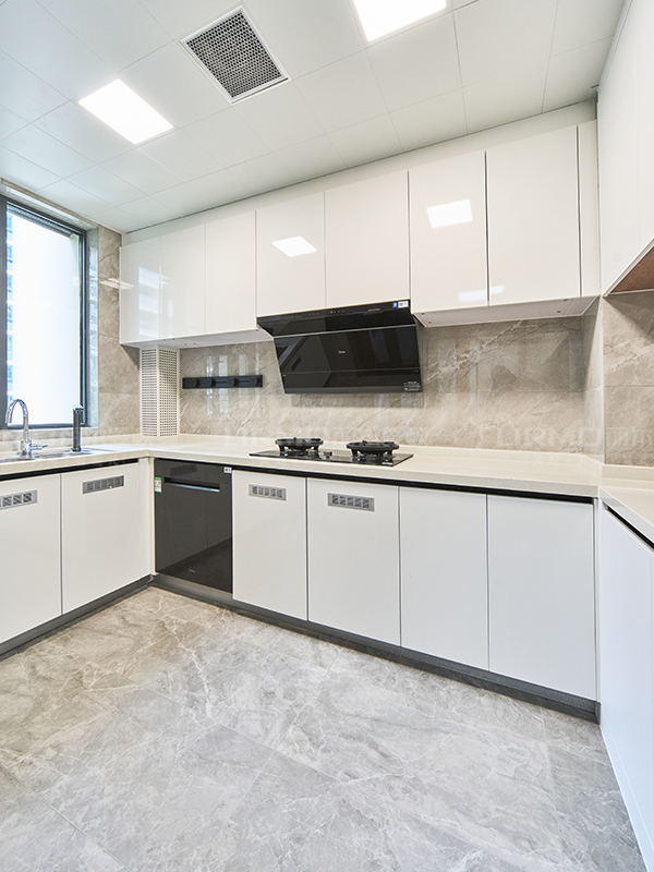 柜子颜色采用传统纯白色系搭配木纹让整体空间更加温暖