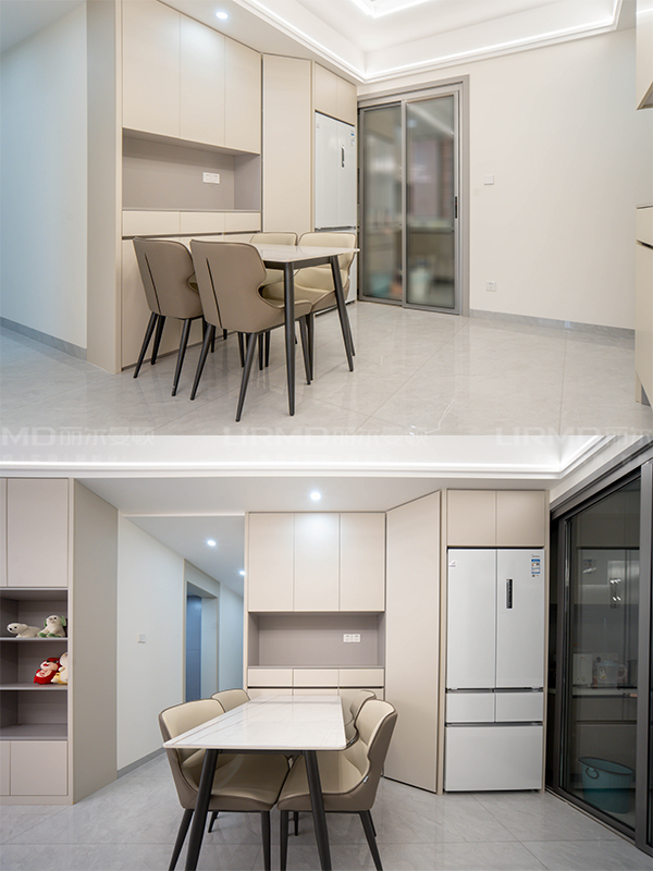 入户玄关柜+餐边柜+嵌入式冰箱柜+橱柜+电视机柜+沙发背景墙