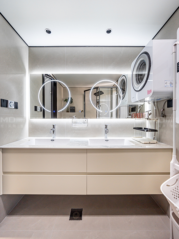 全房门墙柜一体,整体色调统一和谐,搭配现代风格软装家具,耐看又耐用