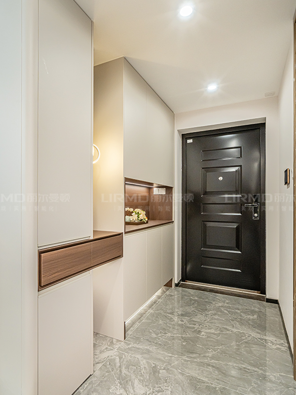 鞋柜设计一个造景区域,餐边柜增添岩板台面和背板。