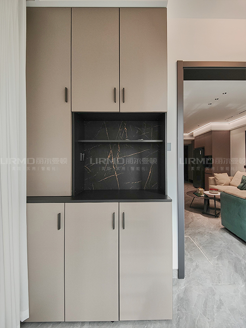嵌入式餐边柜开放格玻璃柜门相互搭配,质感满满。