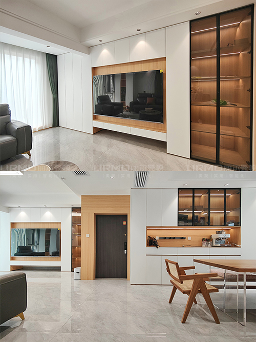 侧边玻璃门削弱柜体的厚重感,下侧做镂空设计,