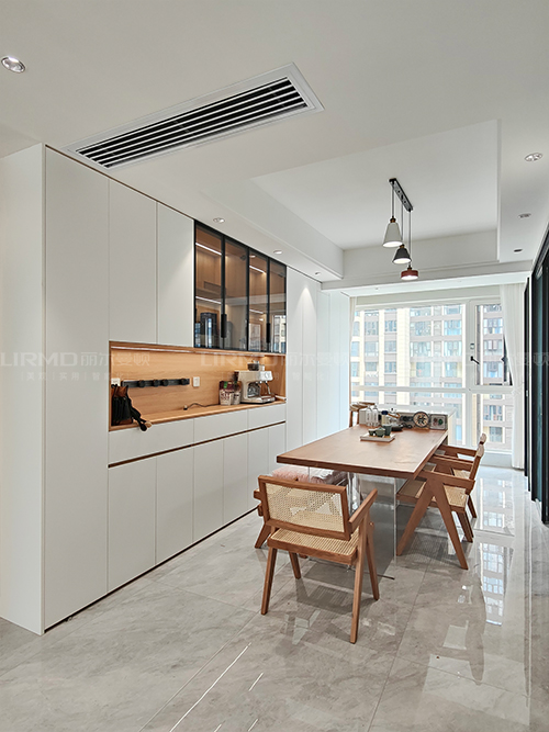 餐厅与生活阳台打通,餐边柜+阳台柜融为一体,