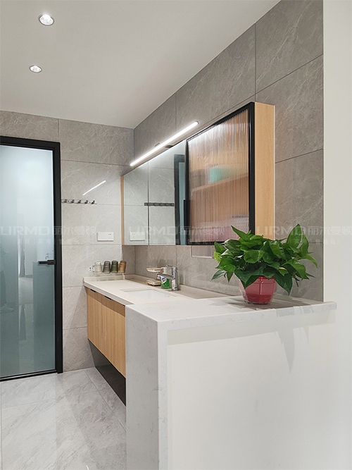洗漱柜半墙设计真的显大又好看,镜柜还可收纳,减少洗手台的负担