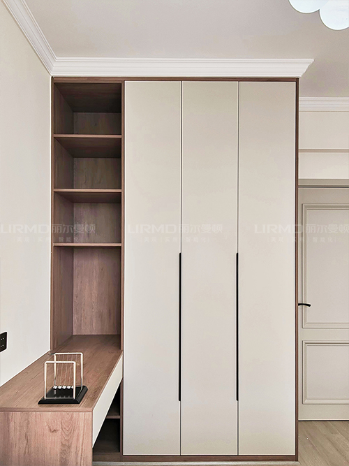 右侧一门到顶肤感柜门,干净又不失质感,满满的收纳空间。