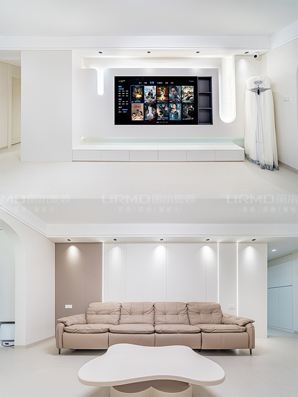 客餐厅不做复杂灯饰,主灯+氛围灯带装饰,让空间开阔,视野明亮