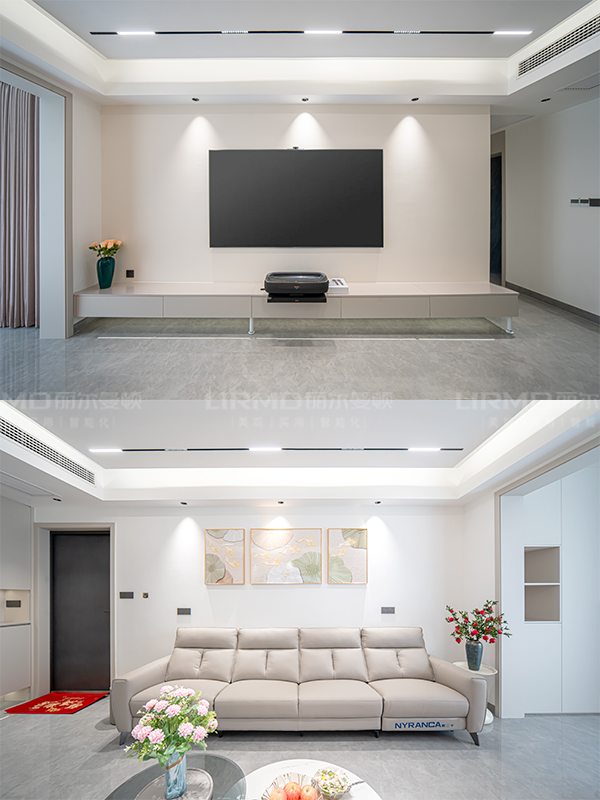 客厅做无主灯和双眼皮吊顶设计,整体更显开阔