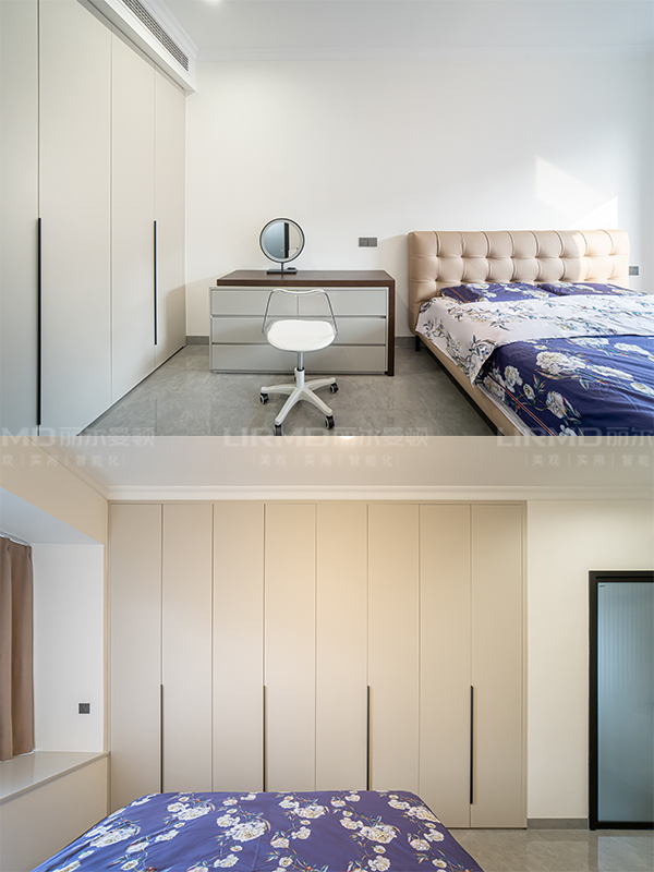 卧室柜做转角柜,更大限度的利用空间,满足收纳需求