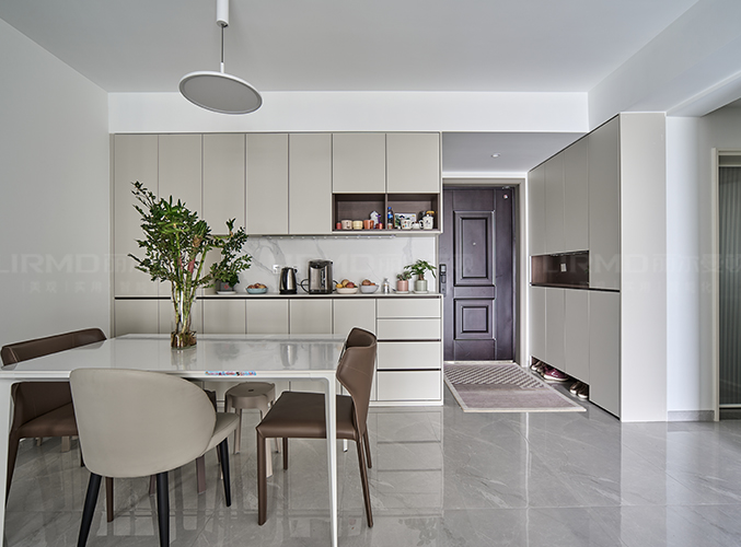 一整排的餐边柜,中间部分可以做一个水吧台的使用,背板和台面均是岩板材质,更显感。