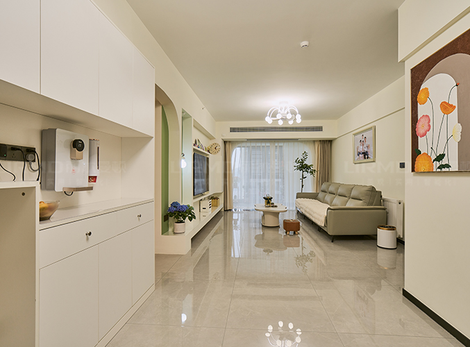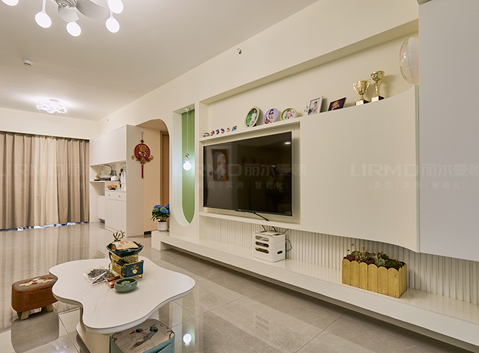 客厅 电视墙做石膏内嵌,开放空间摆设更随心。 下方留出暖气空间。 主卧 搜索“丽尔曼顿”http://www.lrmdjj.com/官网,获取更多装修知识! 搜索“丽尔曼顿家居”微信公众号和小程序,了解更多报价! 空间展示