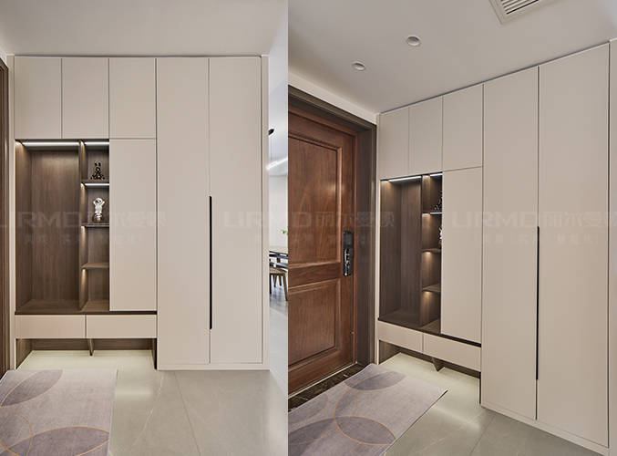 18mm厚杉木芯板,浅色柜门加深色柜体的碰撞,视觉效果更好,既能坐下换鞋