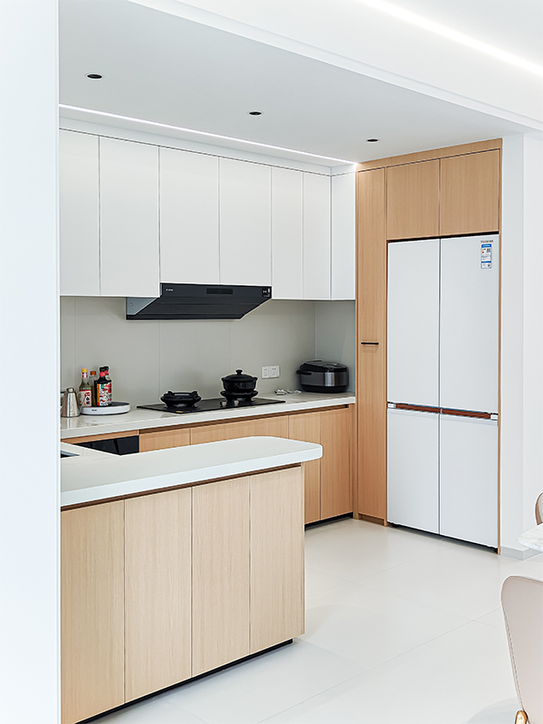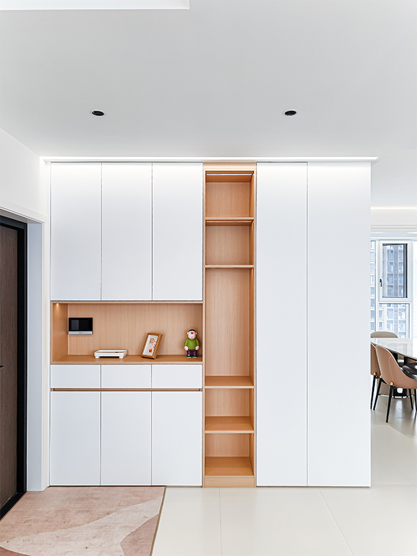 极简感贯穿整个空间,原木色淡化了极简风带来的疏离感,让家有了温度