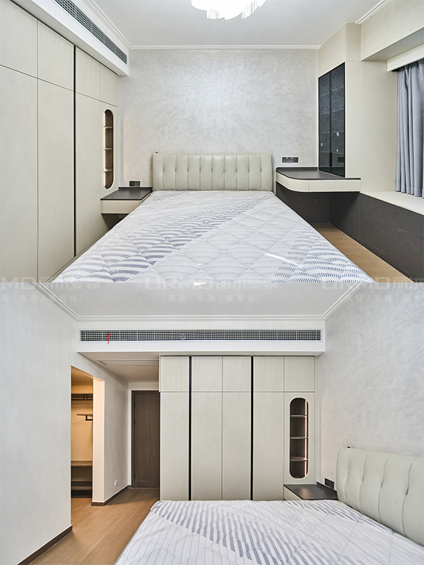 主卧衣帽间壁挂系统简约美观,主卧飘窗梳妆办公两不误