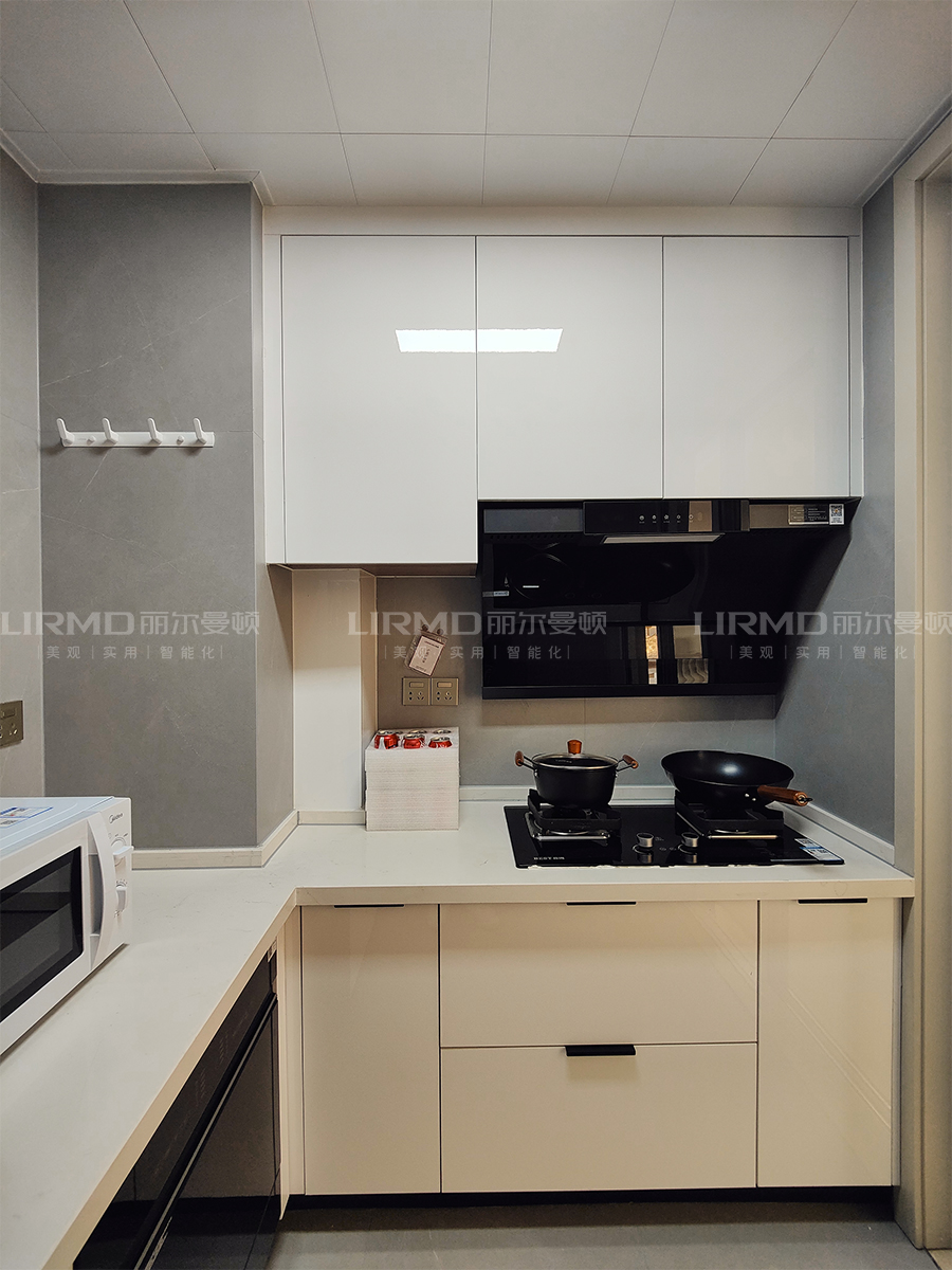 L型3米橱柜选用进口pet高光柜门,一应俱全