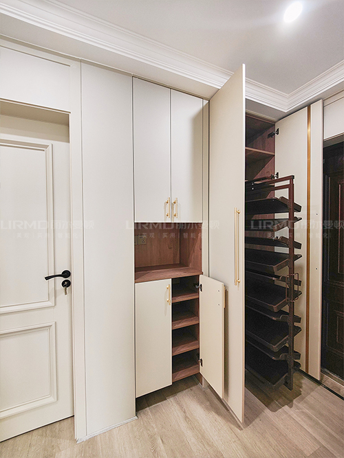 玄关柜做个双面旋转鞋架,空间直接大一倍。