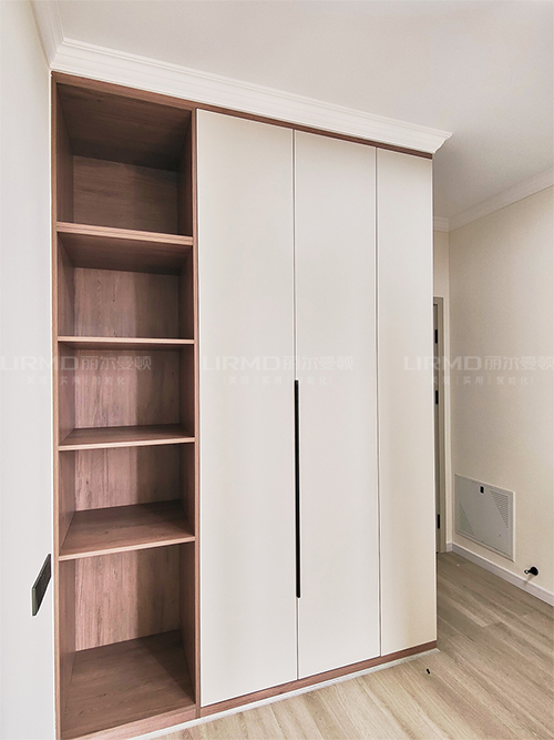 右侧一门到顶肤感柜门,干净又不失质感,满满的收纳空间。