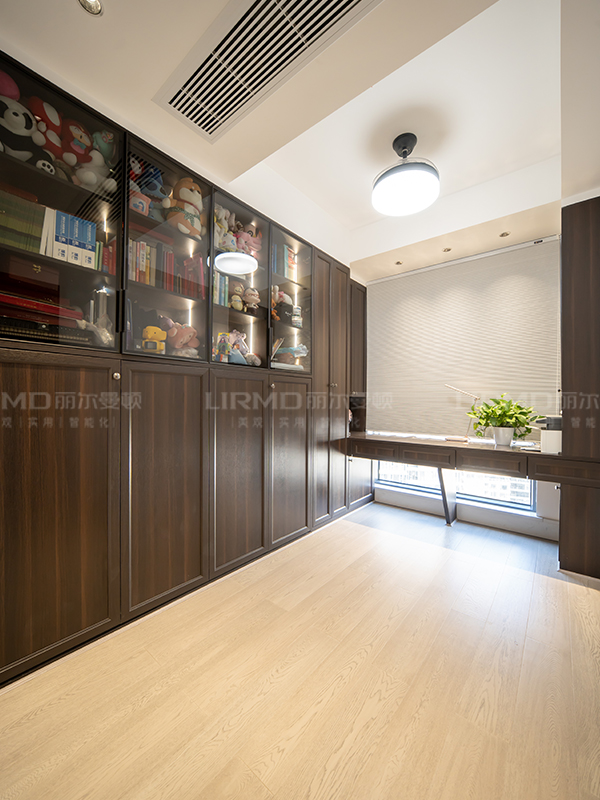 书柜烟熏橡木造型门与玻璃柜相结合,东方传统元素与现代主义的碰撞也太好看了,