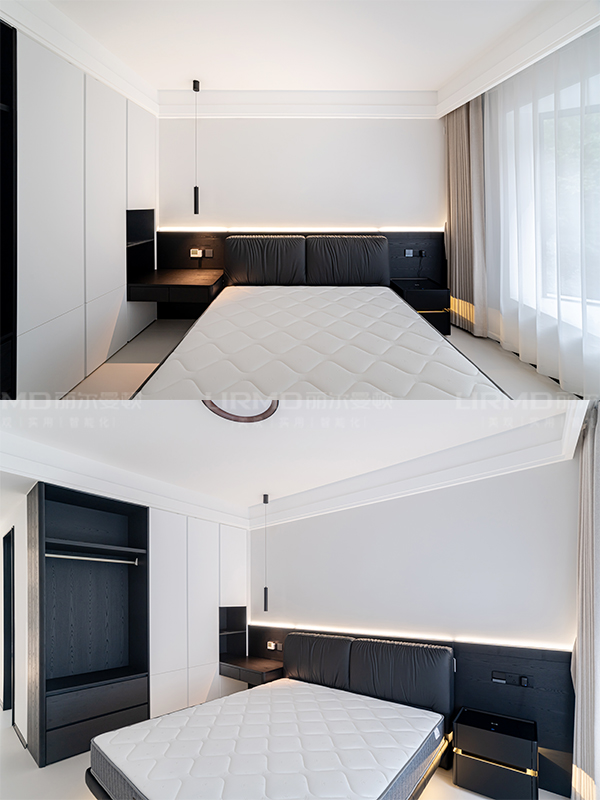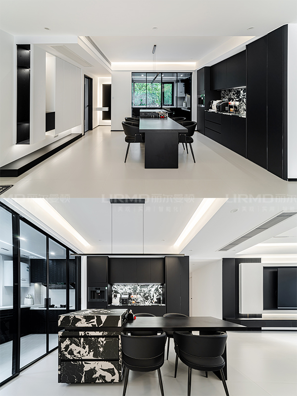 现代黑白灰搭配些许跳色,既显个性又不张扬。适当使用肤感纯黑色系突出硬装中的层次感,